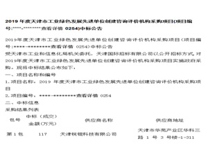 • 2019年度天津市工業綠色發展先進單位創建咨詢評價機構